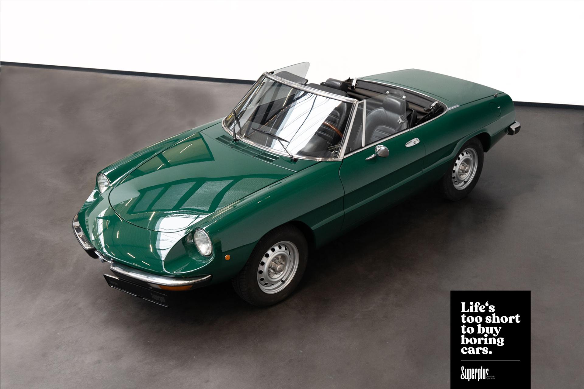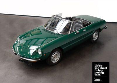 Dieser wunderschöne dunkelgrüne Spider wude seit 1982 in zweiter Hand bewegt. Das Fahrzeug wurde vom nunmehr 85 jährigend Halter geliebt und gepflegt. Vor einigen Jahren bekam das Auto eine neue Lackierung die sehr gut! ausgeführt wurde. Zudem wurde vor rund 1000km der Motor und das Getriebe bei einem Alfaspezialisten überholt. Rechnungen für rund 11000€ liegen vor. Das Auto erhält bei Auslieferung neuen TÜV. Ein senstionell schöner Spider mit dem schönen Blecharmaturenbrett der technisch wie auch optisch auf dem besten Stand ist! So kann der Sommer kommen.