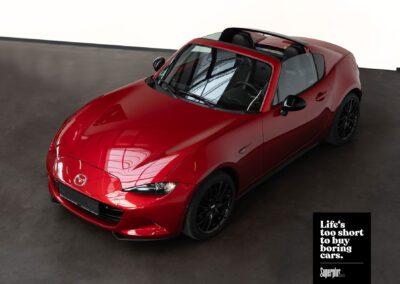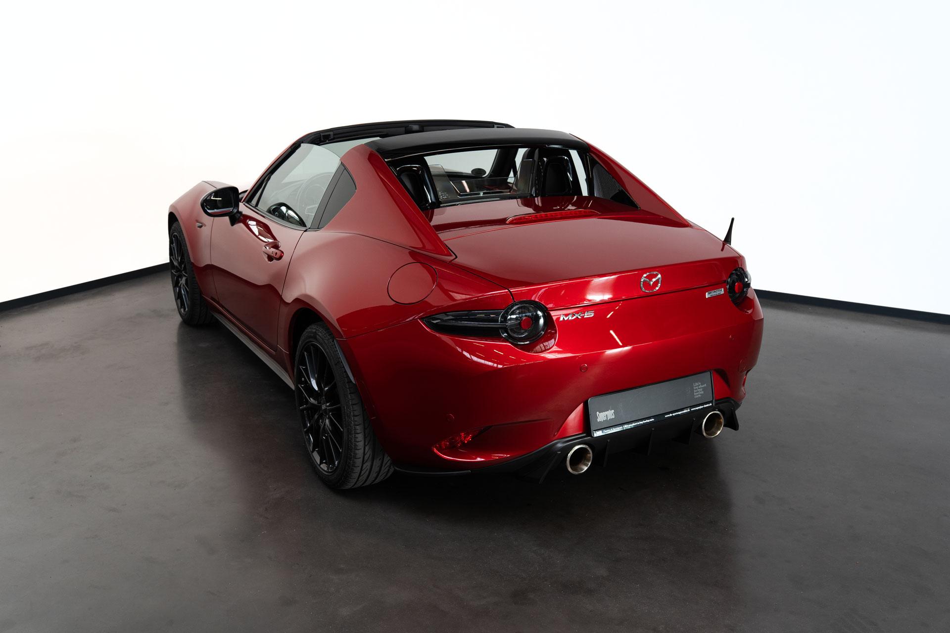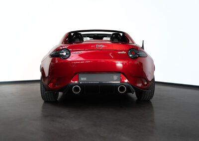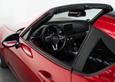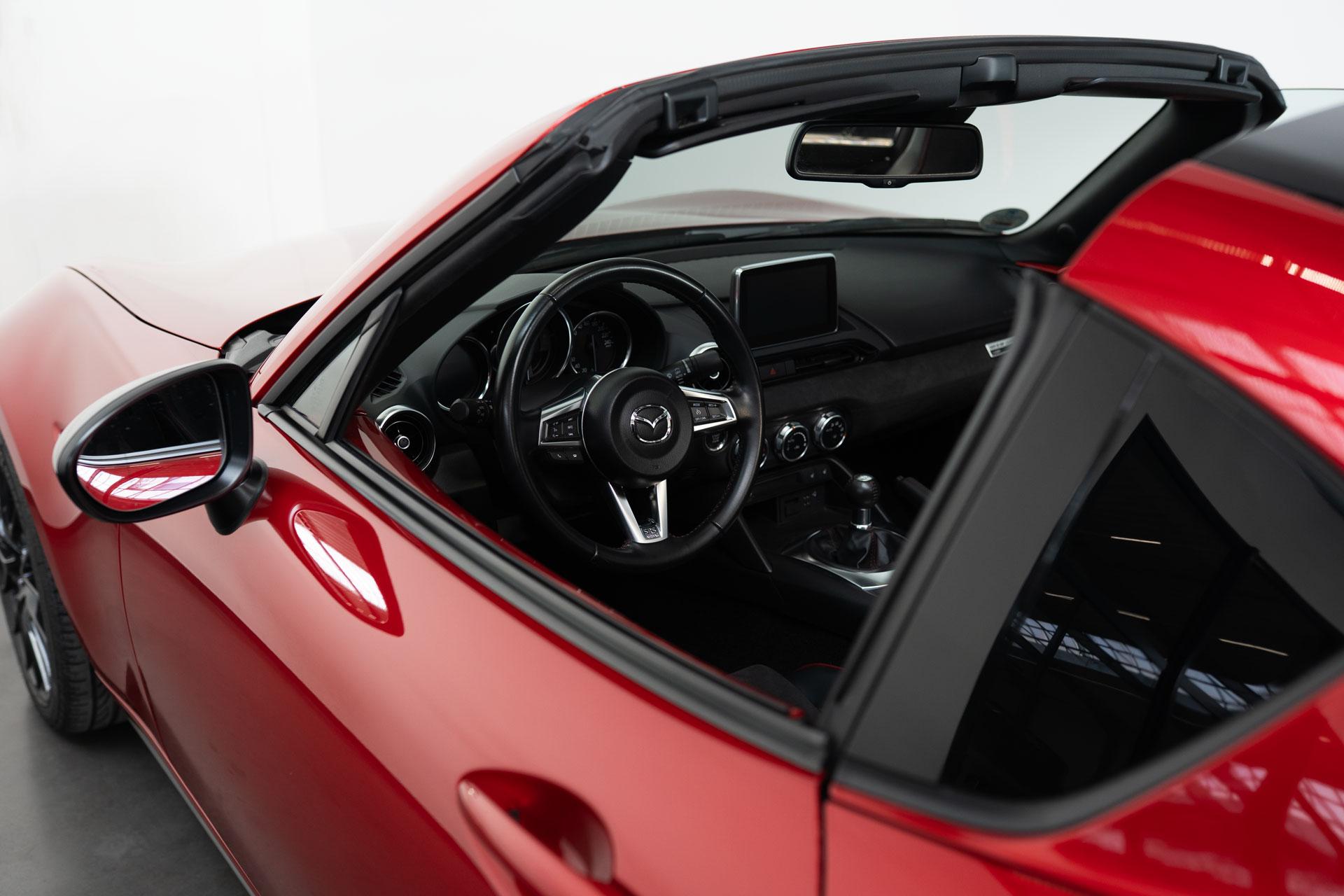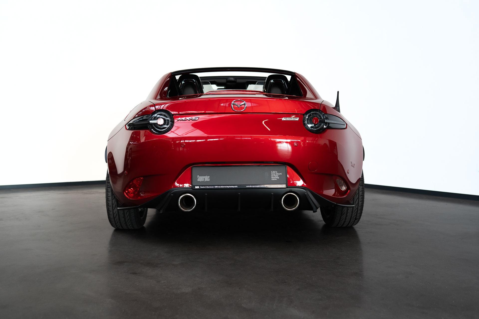 Dieser Mazda MX5 ist die #70 aus 250 Ignition Sondermodellen, die zum Start des RF unter Bewerbern ausgelost wurden. Das limitierte Ignition Sondermodell zeichnet sich durch die Acantara-Innenaustattung mit Recarositzen, die Bosesoundanlage, dem Bilsteinfahrwerk, den schwarzen Rädern und dem schwarzen Dach und schwarzen Spiegelkappen, Sonderfarben und dem großen Motor aus. Dieses Modell war seit 2017 in einer Hand und hat lediglich 48467km gelaufen und wurde nur im Sommer bewegt. Die MX5 ND sind berüchtigt für ihre werksseitig schwache Bremsanlage. Unser Auto wurde deshalb mit einer Stoptech 4-Kolben Bremsanlage versehen. Zudem hat das Auto eine zweiflutige Sportabgasanlage und dunkle Rückleuchten (orig. dabei). Ein seltenes Sondermodell für den MX5-Liebhaber.