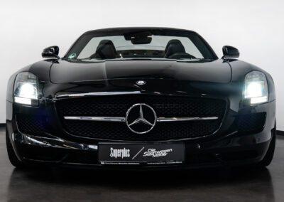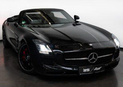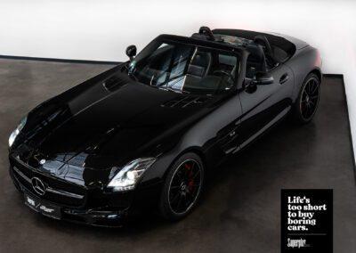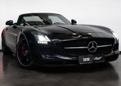 Der Merceds-Benz SLS AMG Roadster ist sicherlich das beste und schönste was AMG je gebaut hat. Allein dieser Motor. Sowas wird es nicht wieder geben. Unser Roadster befindet sich in einem makellosen Zustand in der klassischen Farbkombination schwarz/schwarz. Das Fahrzeug wurde 2011 in Kalifornien ausgeliefert, dort in ersten Hand bewegt und lückenlos gepflegt (Carfax mit allen Daten vorhanden) bis es 2015 nach Deutschland exportiert wurde. In Deutschland hat das Auto zwei Einträge und wurde immer lückenlos bei Mercedes scheckheftgepflegt. Der Letzte große Service war im Juli 25 bei MB Beresa in Münster. Das Fahrzeug hat im Jahre 2022 ein Wertgutachten erhalten. Hier wurde eine Zustandsnote 2+ und ein Marktwert von 195.000€ ermittelt. Der SLS verfügt über eine volle Ausstattung und wurde bei Umrüstung 2015 mit den GT-Rückleuchten und dem GT-Instrumentencluster versehen. Zudem wurde ein Applecarplay-Modul nachgerüstet. Ein sehr sauberes makelloses Auto mit wenig Kilometern.