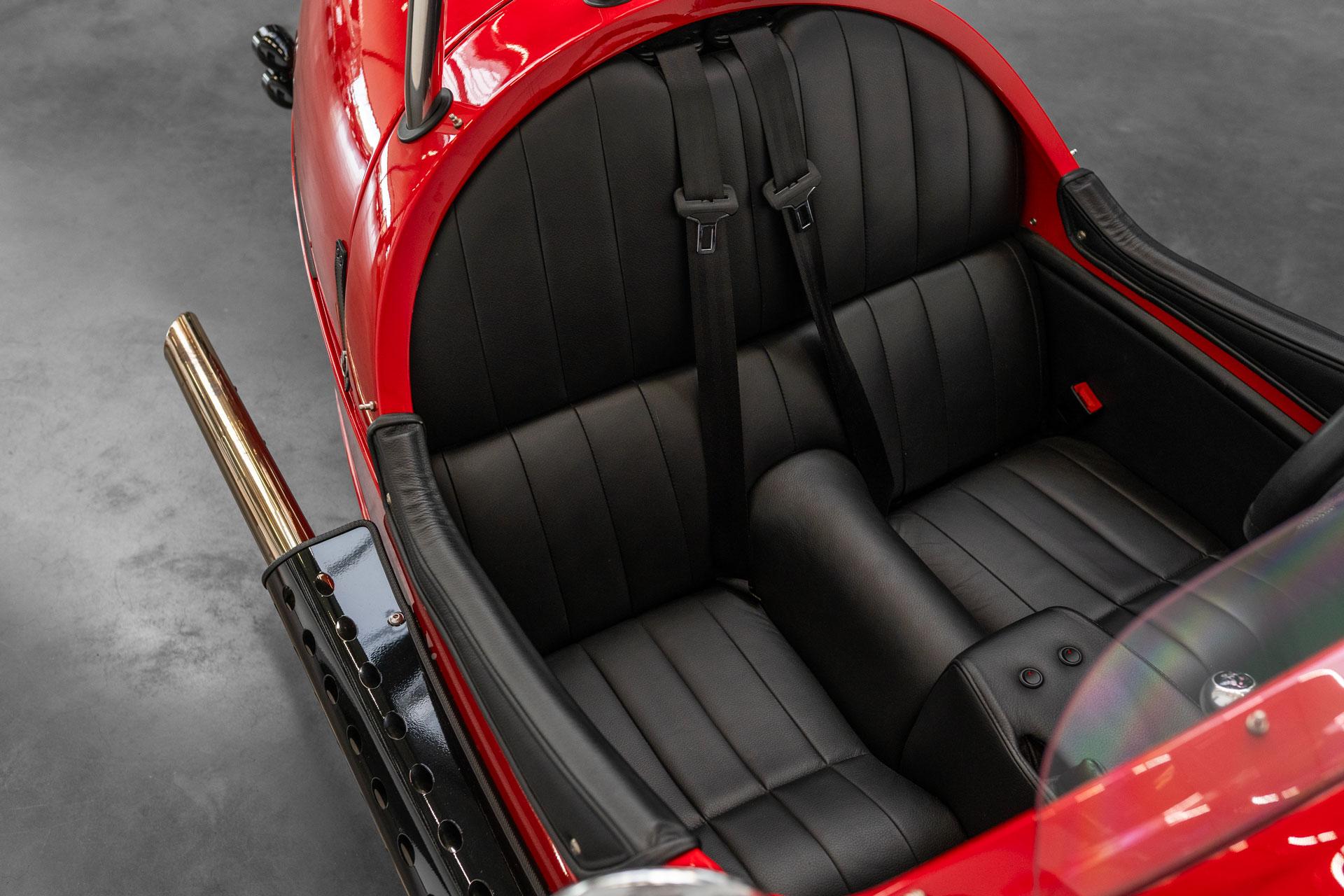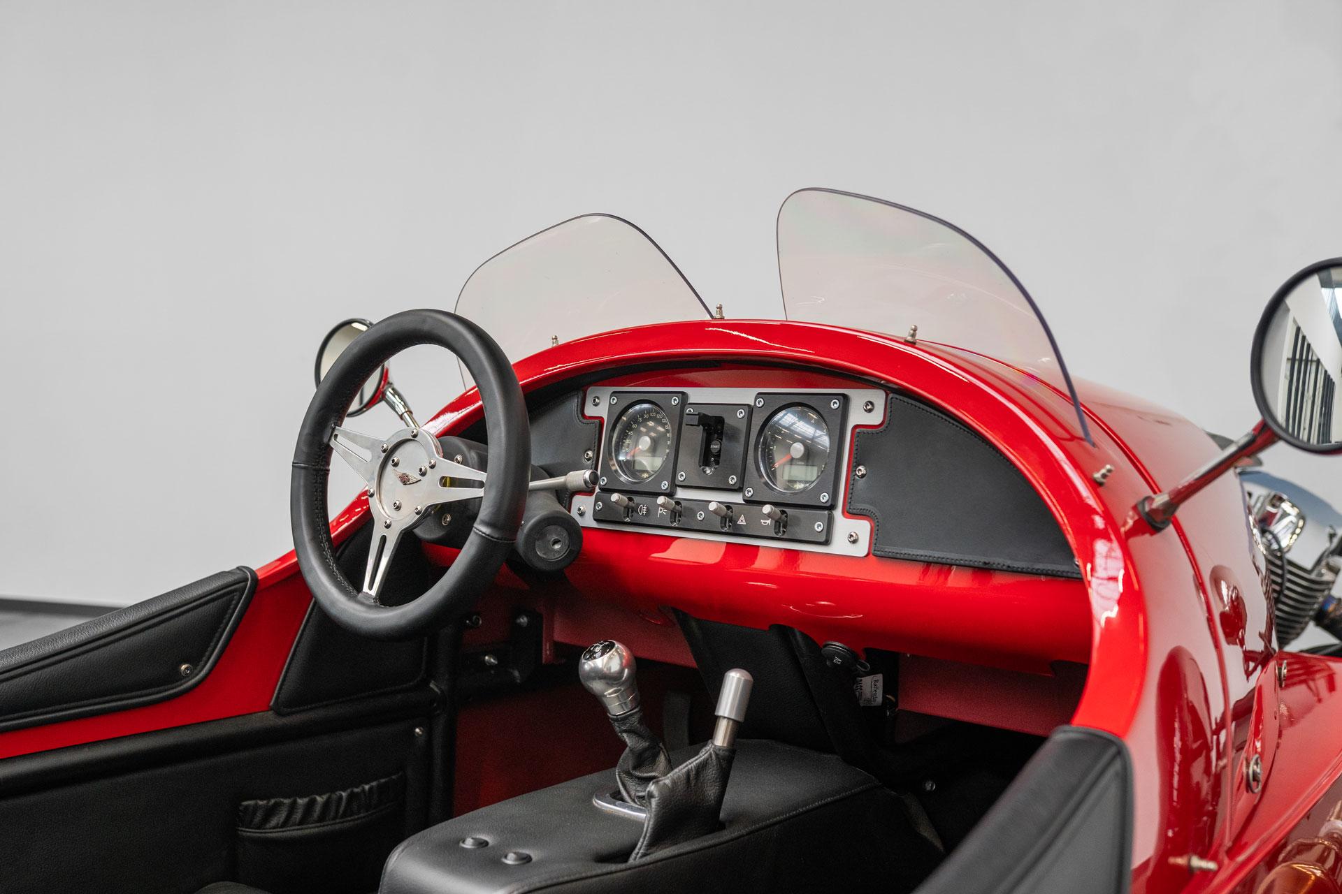 Zum Verkauf steht ein außergewöhnlicher Morgan 3 Wheeler in der klassischen Farbgebung Morgan Sports Red mit edlem Yarwood Brooklands Black Interieur – ein Fahrzeug, das Emotionen weckt und jede Ausfahrt zu einem Erlebnis macht.
