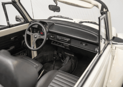 Dieser Volkswagen Käfer 1303 Cabrio ist einer letzten bei Karmann in Osnabrück gebauten Cabrios, stammt aus zweiter Hand. Das Auto wurde die letzten 25 Jahre von einem Bänker. Das Auto befindet sich im Erstlack. Rost ist hier selbstverständlich Fehlanzeige. Das verdeck wurde vor kurzem erneuert und sowohl der Lack als auch das Interieur befinden sich in einem sehr schönen Zustand. Die Laufleistung von 89563km wird versichert. Der Service wird bei Auslieferung neu gemacht. Wer einen Käfer mit toller Historie sucht ist hier fündig geworden.