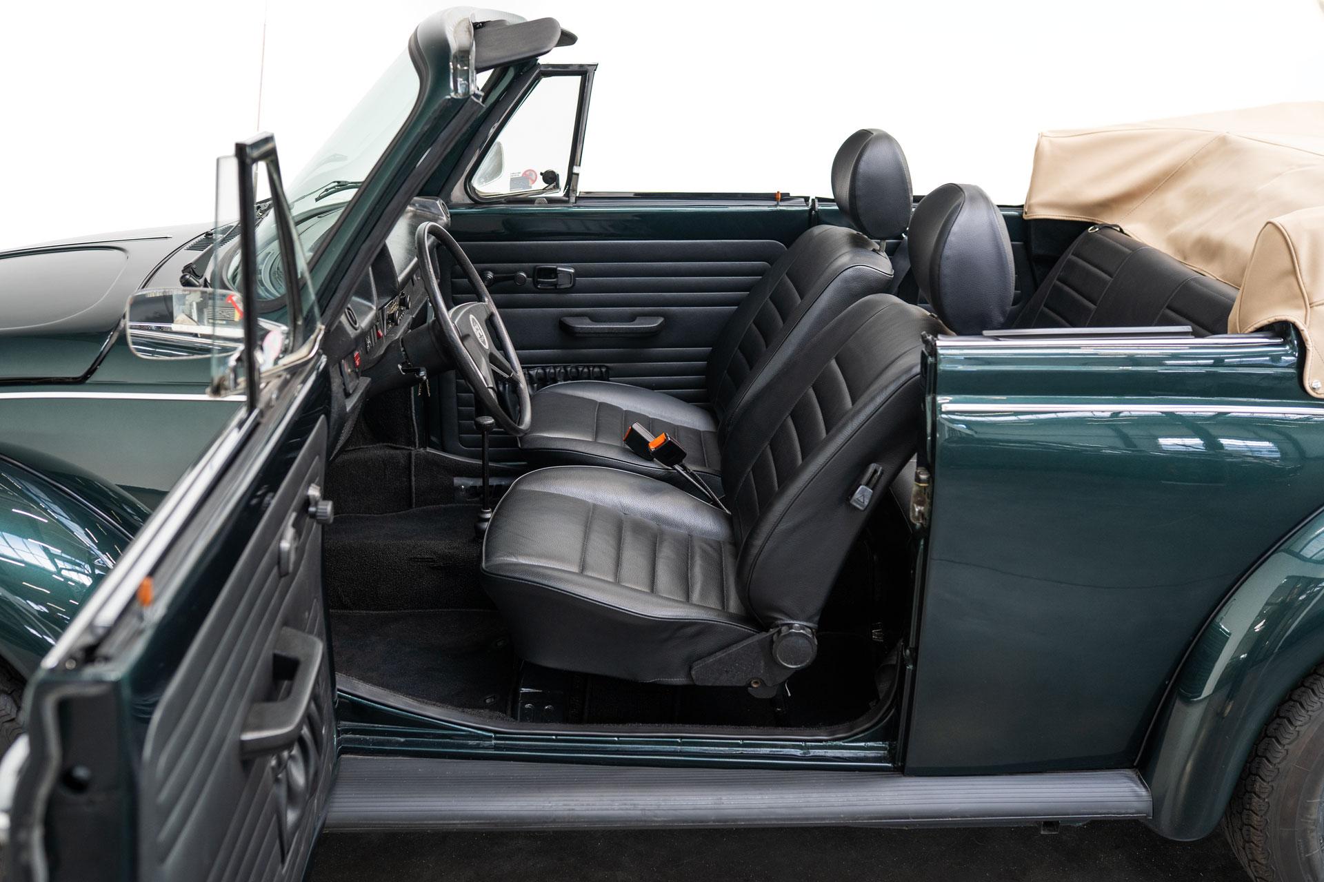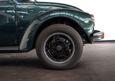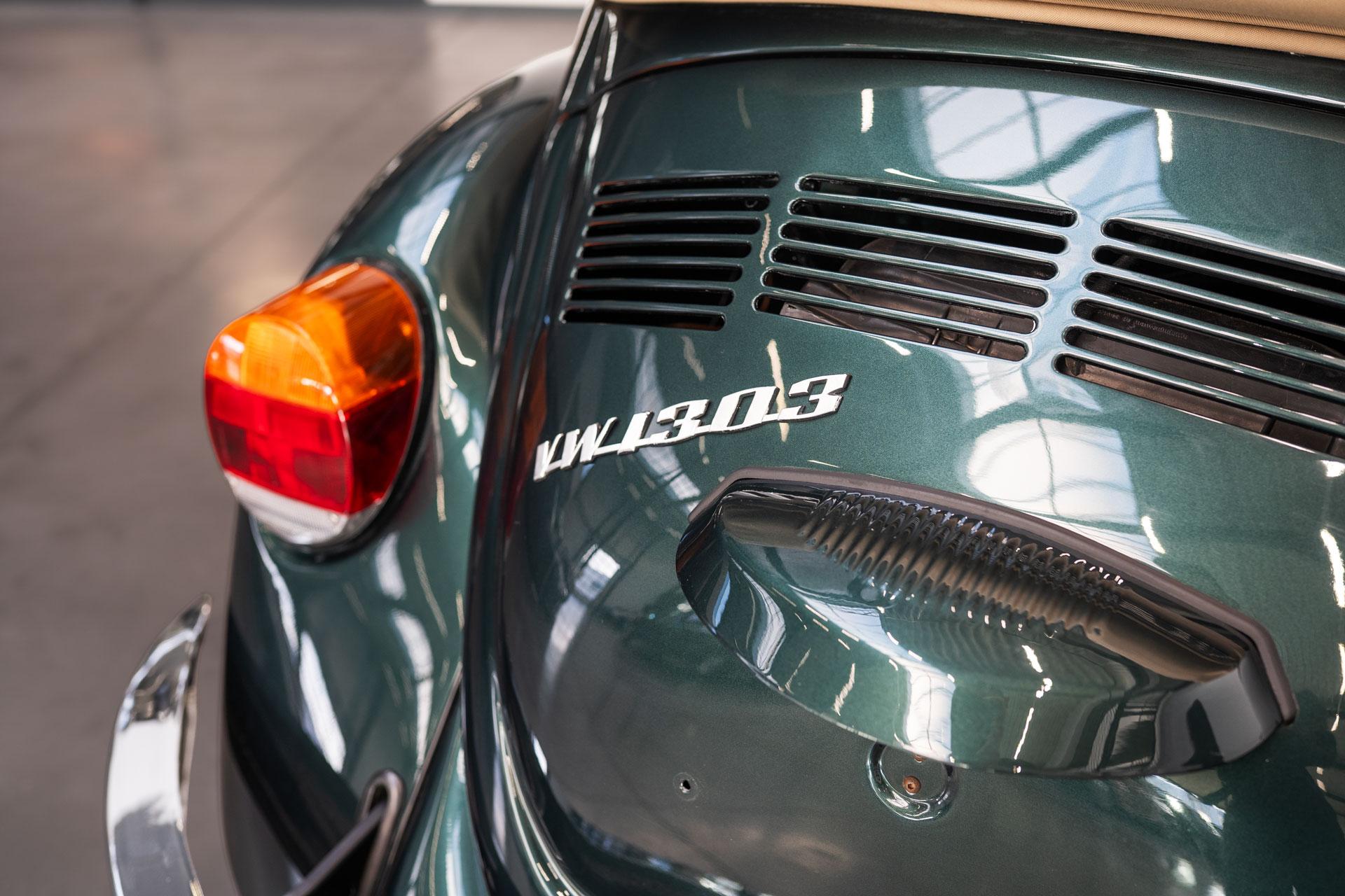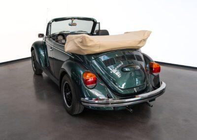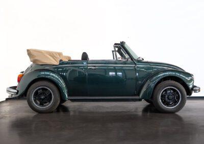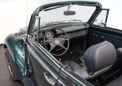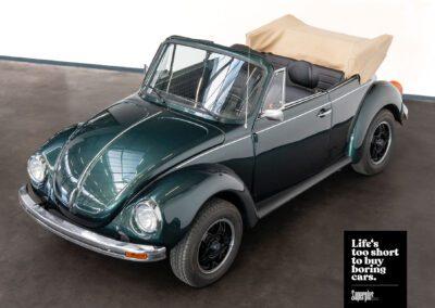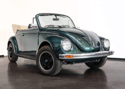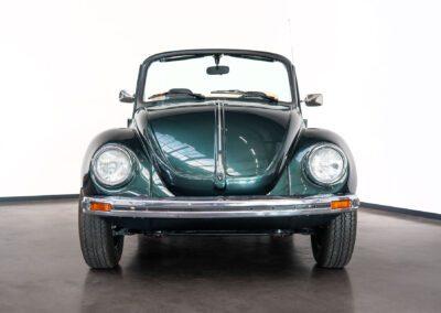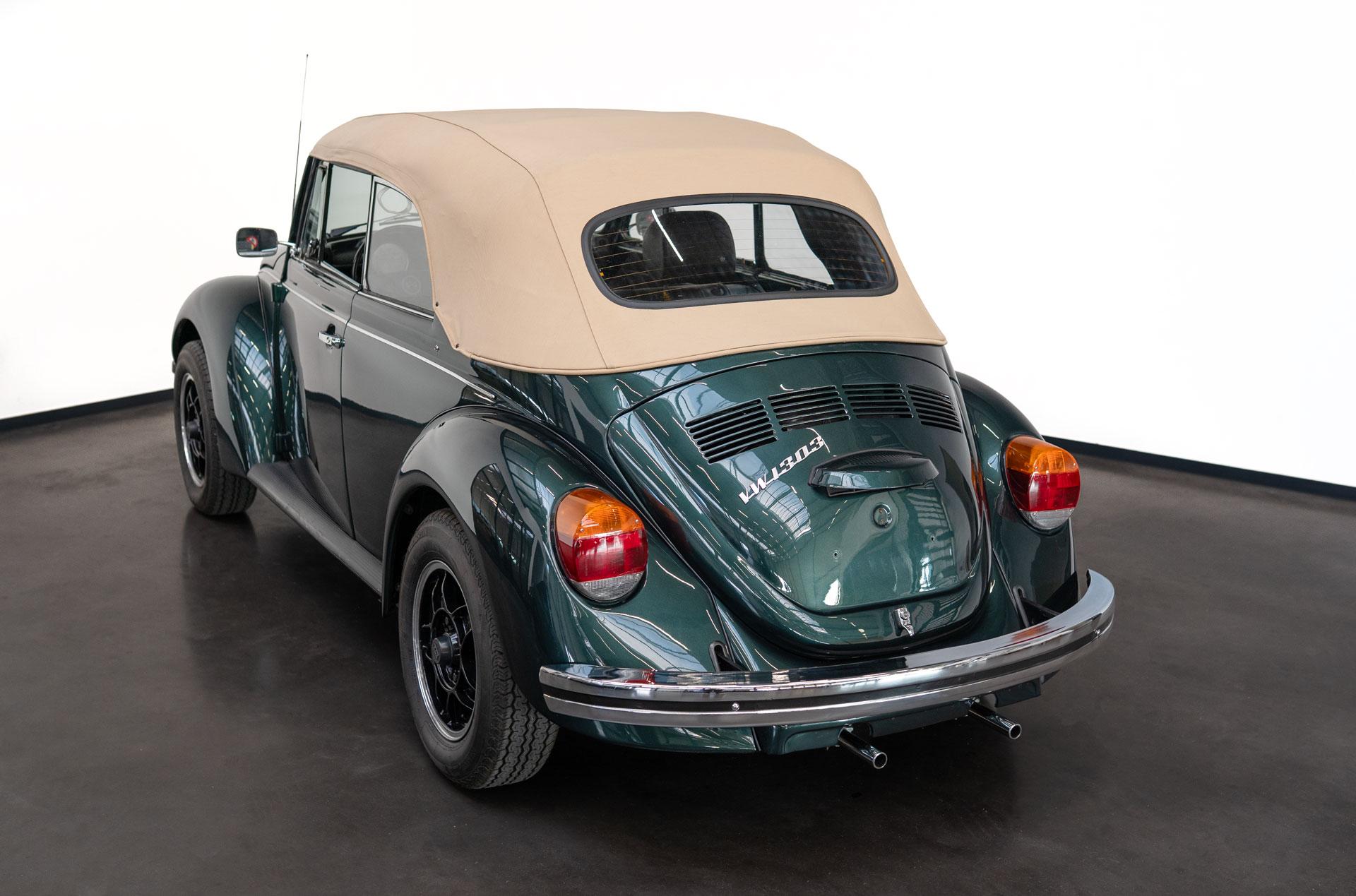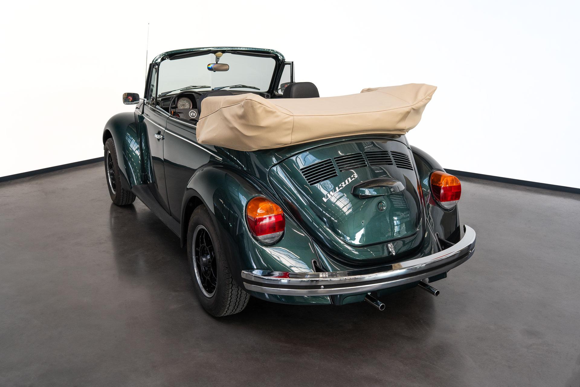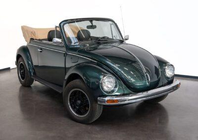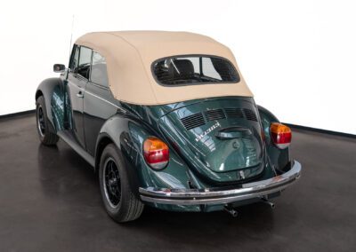 Dieser Volkswagen Käfer 1303 LS Cabrio in diesem wunderschönen dunkelgrün metallic befindet sich nahezu im Neuwagenzustand, da das Auto komplett neu aufgebaut und seit 2024 lediglich 1000km eingefahren wurde.