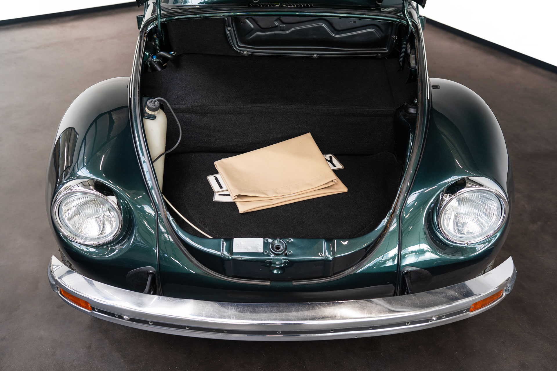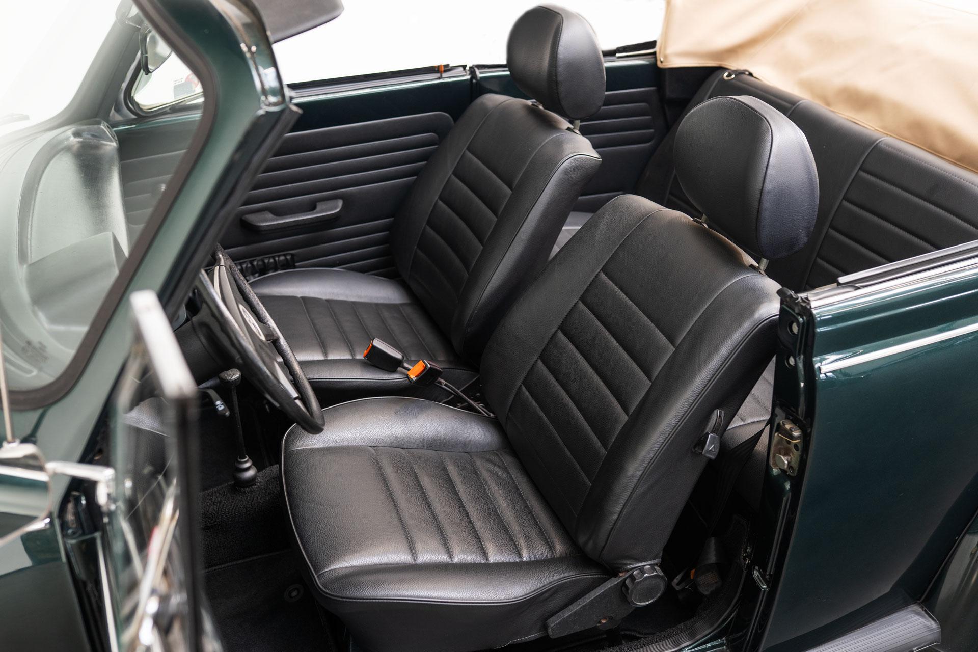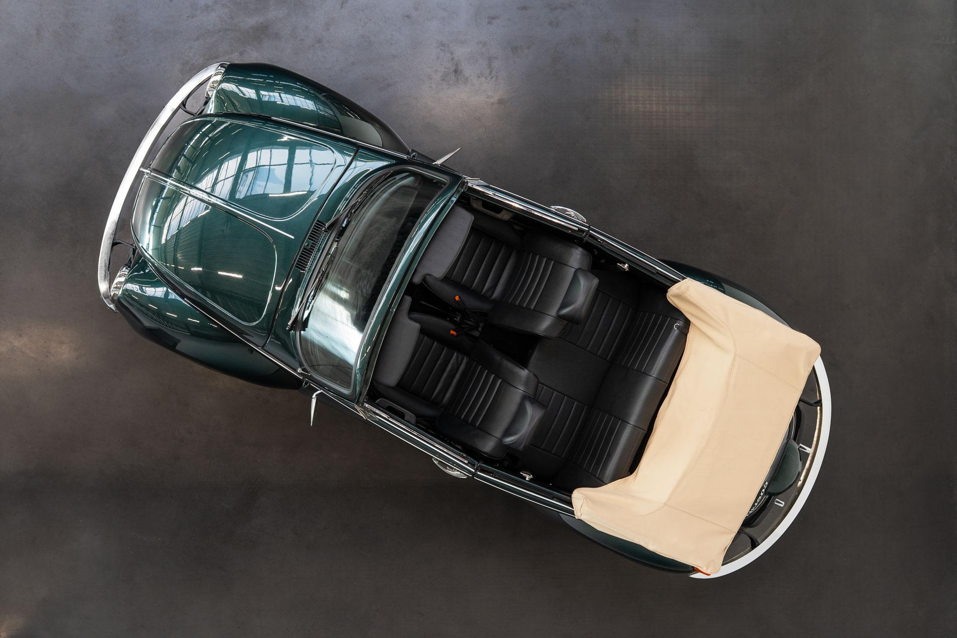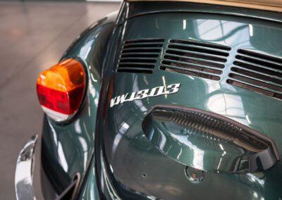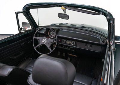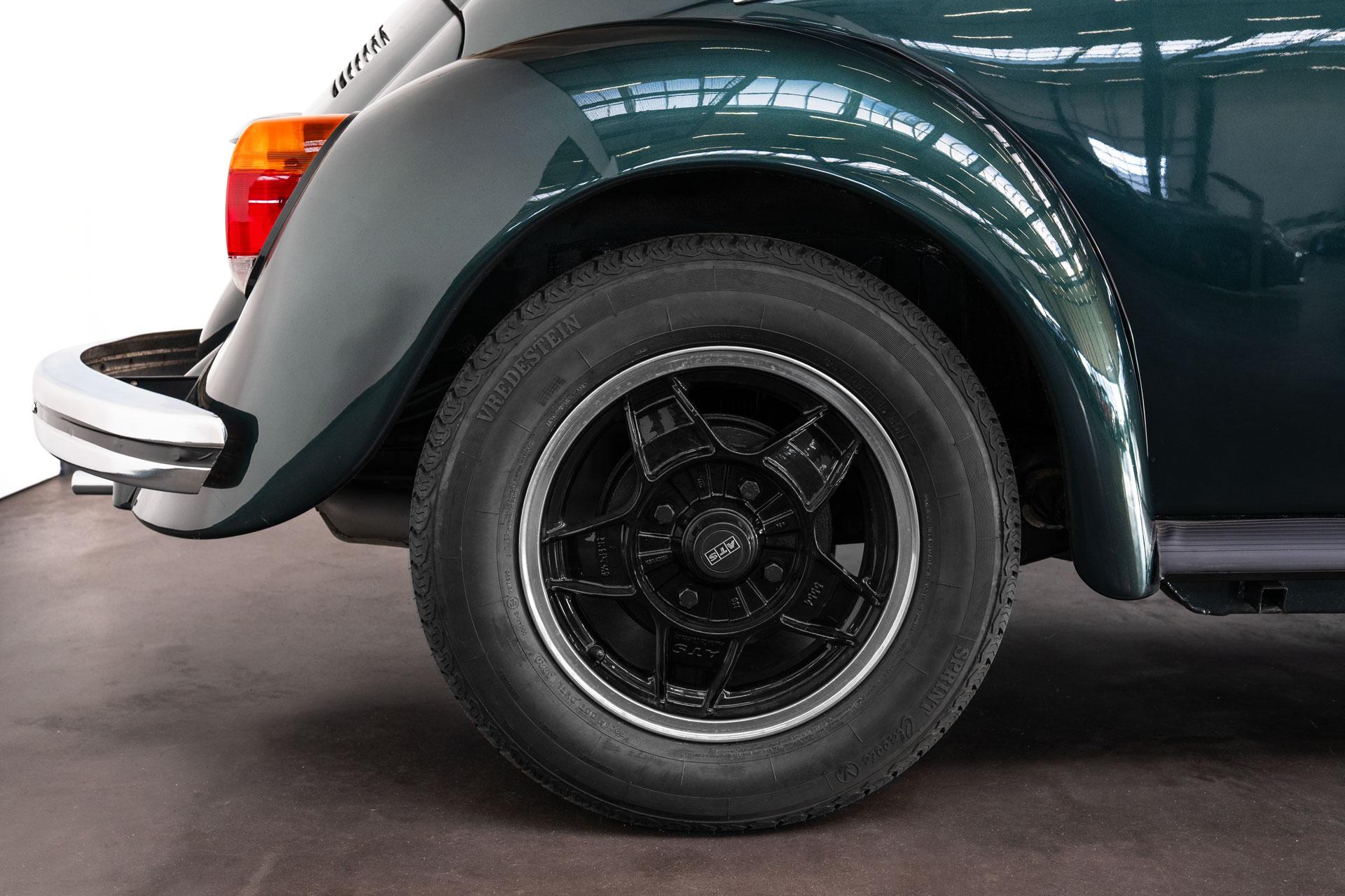 Dieser Volkswagen Käfer 1303 LS Cabrio in diesem wunderschönen dunkelgrün metallic befindet sich nahezu im Neuwagenzustand, da das Auto komplett neu aufgebaut und seit 2024 lediglich 1000km eingefahren wurde.