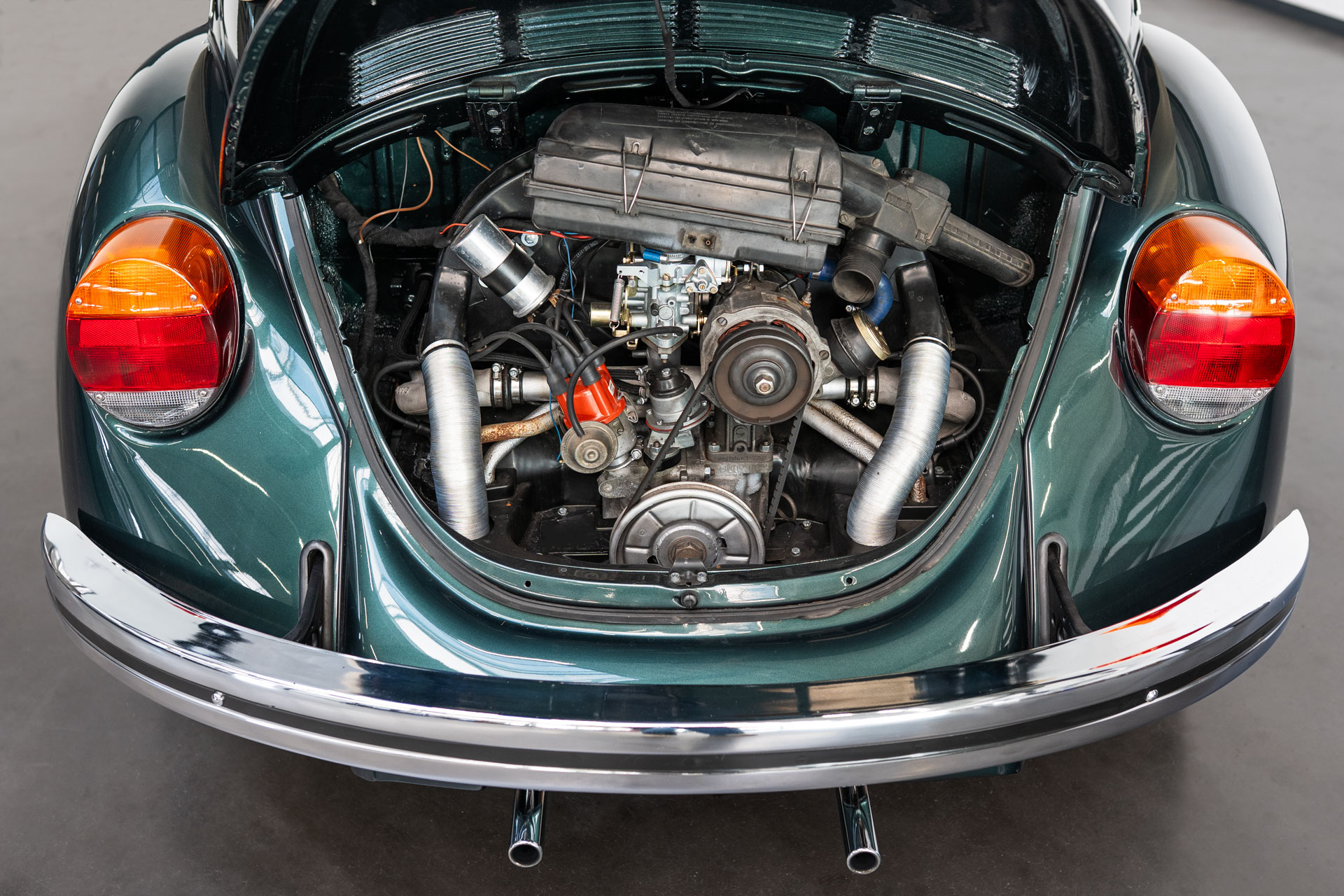 Der VW Käfer wurde bei einer Fachwerkstatt in Deutschland für rund 43000€ (ohne Fahrzeug!) komplett restauriert.